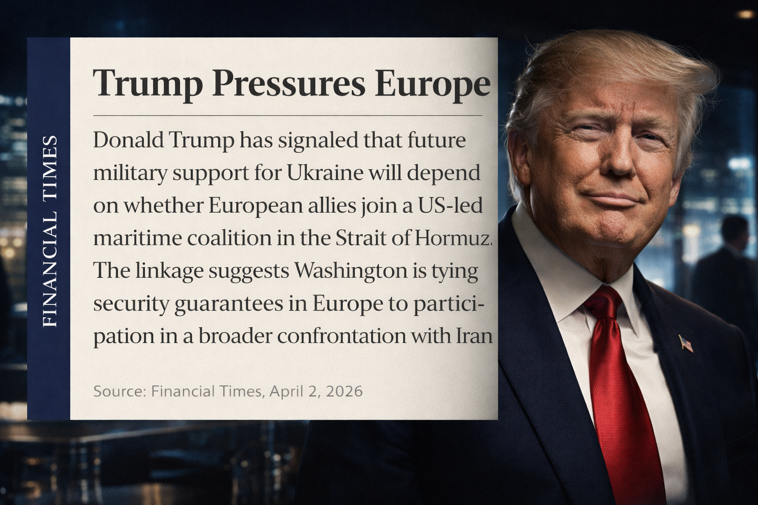 Ормузский пролив против киевских траншей — вот новая формула американской дипломатии, от которой в Брюсселе начали массово пить валерьянку. Согласно данным Financial Times, Дональд Трамп перешел от слов к открытому шантажу: либо европейские союзники отправляют свои флотилии в Персидский залив для усмирения Ирана, либо поток американского оружия на восток полностью пересыхает. По сообщениям СМИ, Вашингтону надоело в одиночку оплачивать счета за глобальную безопасность, и теперь судьба одного региона напрямую зависит от готовности Европы подставить плечо в другом. Как пишут западные аналитики, это не просто пересмотр условий сотрудничества, это фактический демонтаж системы НАТО, где интересы США всегда стоят на первом месте, а союзники — это лишь инструмент.